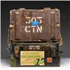All very good serviceable ammo of post war production. Crate containing 2 "Spam" cans of 300 rounds each containing 50 round bandoliers having ammo on 5 round stripper clips. One bandolier missing from one opened can yielding 550 rounds total. 1950 Royal Ordnance Factory Radway Green labeled "RG-30-3-50A". / Large "Spam" can (in crate) of 19 Pakistan POF ammo in 32 round boxes, 2 boxes of 50 rounds each having "FNM 71" headstamps plus 1 box of 15 rounds of PPU ammo (marked "PPU 8502", MBL 8577" and "NCD-02". (02-25027-22/NW). $500-750.