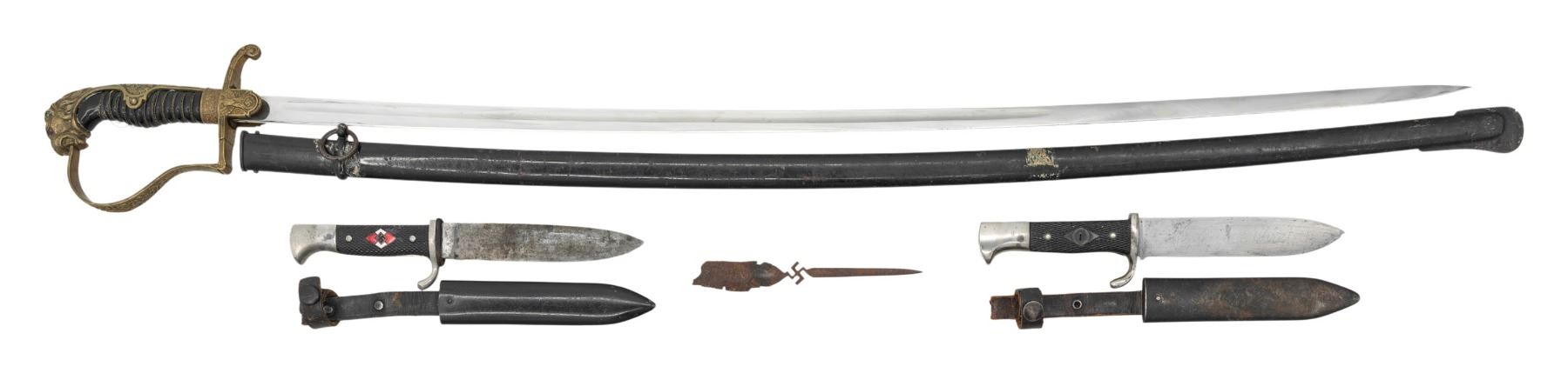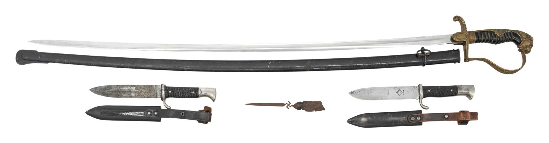 1 WWII GERMAN ARMY SWORD, 2 HJ KNIVES & MORE.