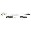 1) WWII German Army officer's sword measuring 39 1/4" overall with a plain blade marked "E. & F. HORSTER (logo) SOLINGEN". Gilded brass hilt with reverse P knuckle bow and a spread wing eagle above wreath on the langet. Nice lion head pommel with "ruby" eyes. Wire wrapped black composite grip with black enameled steel scabbard. CONDITION: blade has substantial original factory polish. Hilt shows moderate wear with only a trace of gilding remaining. Scabbard finish is about 80% intact. 2) WWII German HJ side knife measuring 10 1/4" overall with a plain blade etched "Blut und Ehre" that is marked "(logo) PUMA SOLINGEN". Plated hilt with stylized bird's head pommel. 2 piece black cross hatched grips with a missing HJ diamond on the front. Black enameled steel scabbard with leather belt loop. CONDITION: blade shows very minor sharpening and the motto is quite light but legible. Hilt shows light wear but is missing diamond. Scabbard retains some finish and the belt loop is solid. 3) WWII German HJ side knife measuring 10" overall with a plain blade that is unmarked. Plated hilt with stylized bird's head pommel. 2 piece black cross hatched grips with an inset HJ diamond on the front. Black enameled steel scabbard with leather belt loop. CONDITION: blade shows heavy sharpening. Hilt shows light wear. Scabbard retains 95% finish and the belt loop is solid. 4) A small 6 1/4" iron letter opener made from a piece of bomb shrapnel. opener has a Party symbol and a 3" blade. CONDITION: oxidized finish. (02-25795/BF). NON-GUN. $600-800.