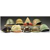 This varied & interesting group includes 1 Austrian National Police visor cap with a green crown/band with red piping & gold chinstrap. / 1 Finnish cold weather shearling hat with a brass, white & blue cockade on the front. Visor is brown leather with brown leather adjustment strap in the back of the hat. / 1 Red felt side cap, possibly from the Spanish Civil War. There is no insignia, however the cap does have a large black tassel. / 1 Swiss M1911/41 helmet with a green painted finish & cloth camouflage cover. 3 Pad brown leather liner with brown leather chinstrap. / 1 Swiss M1911/41 helmet with a dark green painted finish & cloth camouflage cover. 3 Pad brown leather liner with brown leather chinstrap. / 1 Swiss M1911/41 helmet with a green painted finish & Swiss flags painted on the left & right sides. No liner or chinstrap. / 1 Very rare M1916 Russian helmet made at the Tzhore Factory in Rolpino, near Petrograd. A scant 10,000 were produced before production moved to Finland. Dull green painted body with triangular vent at the top. Brown 3 pad leather liner & brown leather chinstrap. / 1 British made khaki cloth liner for an Indian turban. / 1 Danish M1923 WWII helmet with OD green painted sanded finish. Brown leather 8 tongue liner with brown leather chinstrap. / 1 Spanish Army M1942 cork parade helmet. Dark OD painted body with 6 tongue leather liner & brown leather chinstrap. CONDITION: all helmets show some wear but are in good serviceable condition. Russian helmet has moderate wear to finish. (02-16456/BF). $500-900.