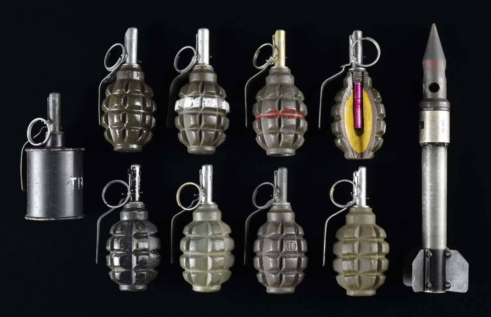 9) 1 DISPLAY CUTAWAY. F1 grenade w/ UZRGM fuse, has quarter cutaway w/ painted interior for display purposes w/ "71" date on fuse.