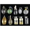 MISC: 1 unmarked grenade appearing to be training to identify Soviet style F1 grenade. / 1 Unmarked Soviet F1 style grenade w/ UZRGM style fuse. / 1 "lemon" style grenade w/ what appears to be a brass body marked "R" on bottom. CONDITION: fair to good overall w/ wear commensurate w/ age & use. (02-16252-1/MD). $250-500.