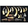 11 POWDER HORNS, 7 POWDER FLASKS & 3 SHOT FLASKS.