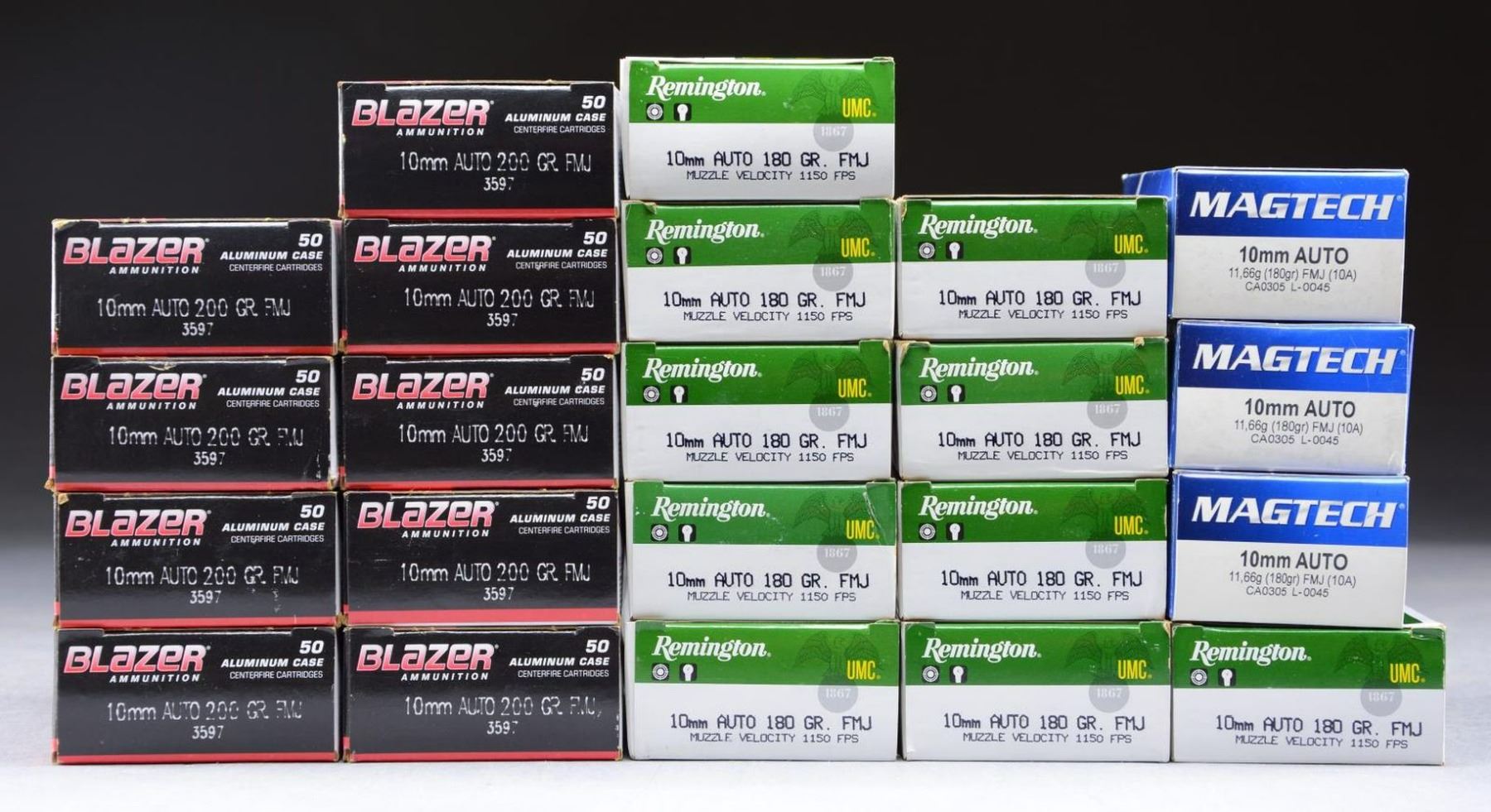 1100 RDS. (22 BOXES) 10MM AUTO FMJ AMMO.