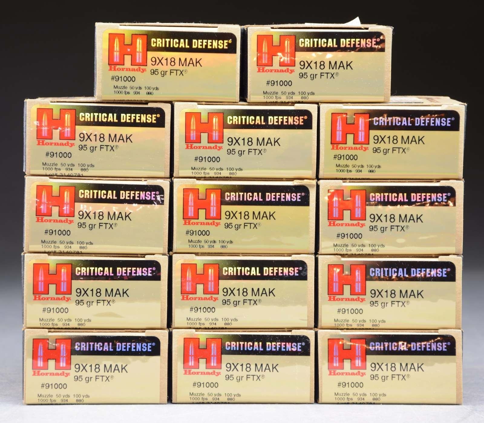 14 BOXES (350 RDS.) HORNADY 9X18 MAKAROV CRITICAL