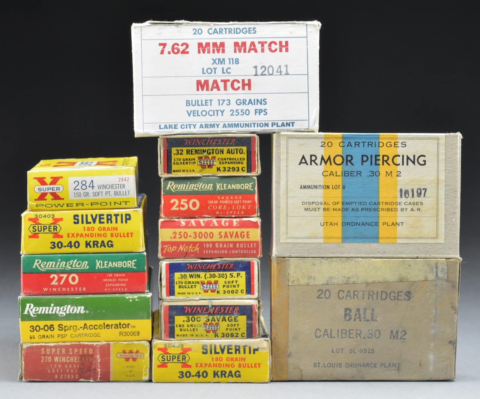 14+ FULL BOXES & 9+ PARTIAL BOXES OF RIFLE AMMO.