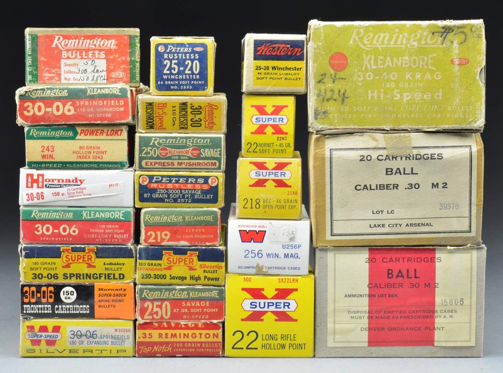 CONDITION: boxes in fair worn to very good condition w/ ammo appearing serviceable. (02-16517-1/MD). $200-400.