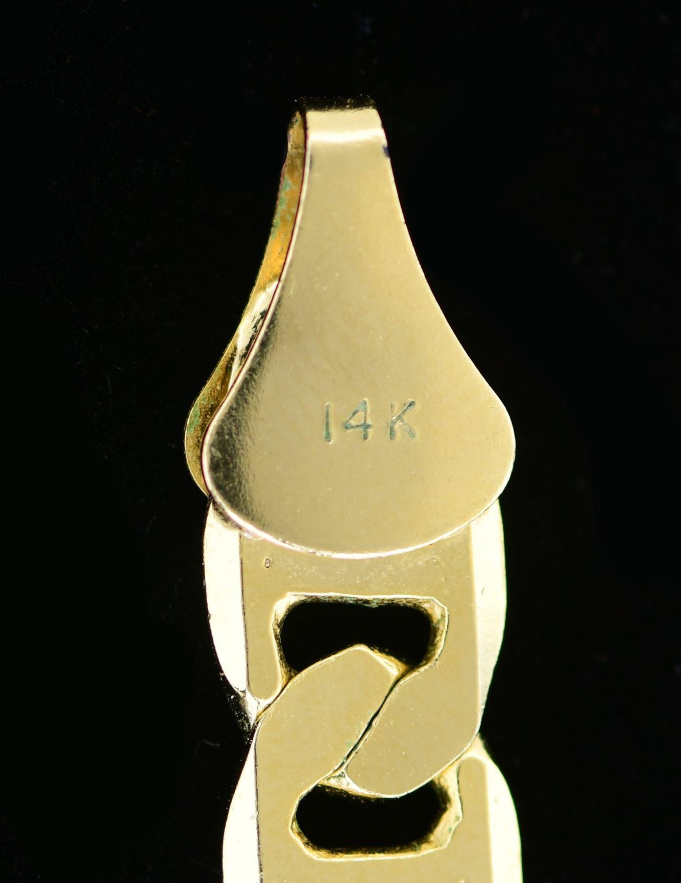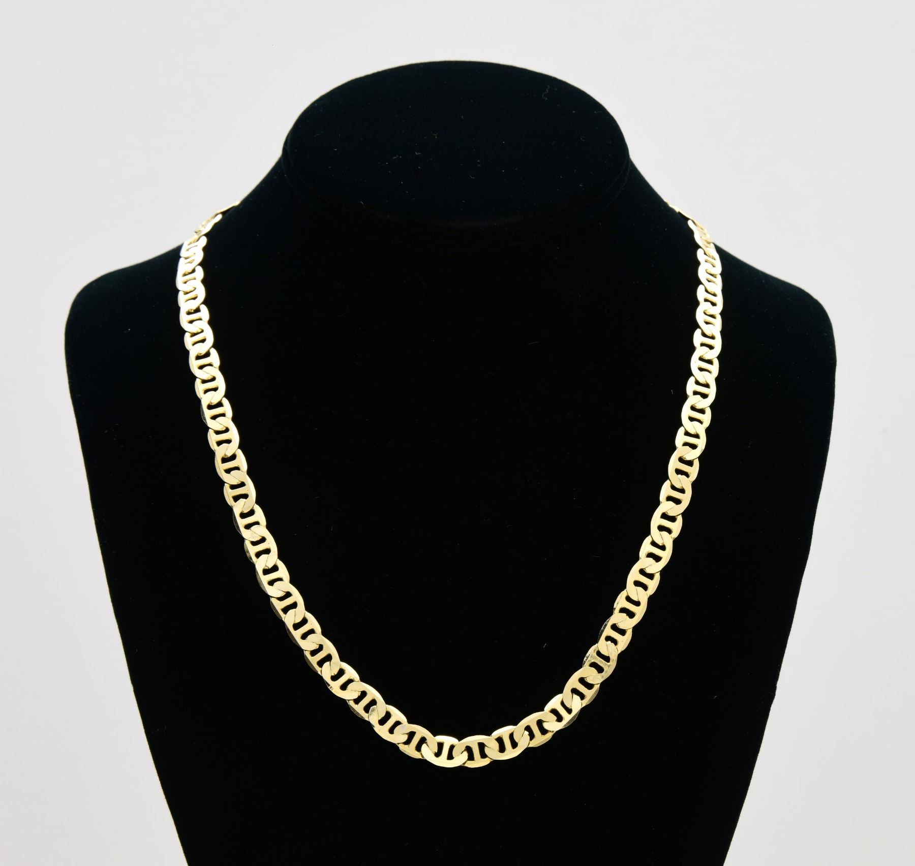 Necklace is comprised of interlocking 14kt yellow gold oval links which ends in a lobster claw clasp marked "14kt". Total weight is 23.8 grams. SIZE: 19 7/8" l. CONDITION: very good to excellent. (05-864/JK). $700-900.