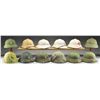 OF NVA HEADGEAR. This lot includes 7 pith helmets with green cotton exteriors & various cap badges on the front with plastic chinstrap & liner. / 2 Pith helmets with navy blue painted cloth exteriors & star/anchor badges on the front with plastic chinstrap & liner. / 3 Pith helmets with white painted cloth exteriors & various badges on the front with plastic chinstrap & liner. / 1 Pith helmet with a white painted cloth exterior & a painted red cross on the front with a star & anchor badge in the center of the cross. / 1 Pith helmet with a green cotton exterior & a camouflage cover. Helmet has a plastic chinstrap & liner. / 1 Pith helmet with green cotton exterior & dark olive drab cover with plastic chinstrap & liner. / 2 Pith helmets with green cotton exterior & net cover with plastic chinstrap & liner. / 2 Visor soft caps in green cotton with green cotton chinstrap & star motif cap badge. / 2 Boonie style hats in khaki. / 2 Boonie style hats in green. / 1 Bonnie style hat in dark blue. CONDITION: all hats generally show light wear with the white helmet showing more dirt than the others. (02-16368/BF). $700-1,100.