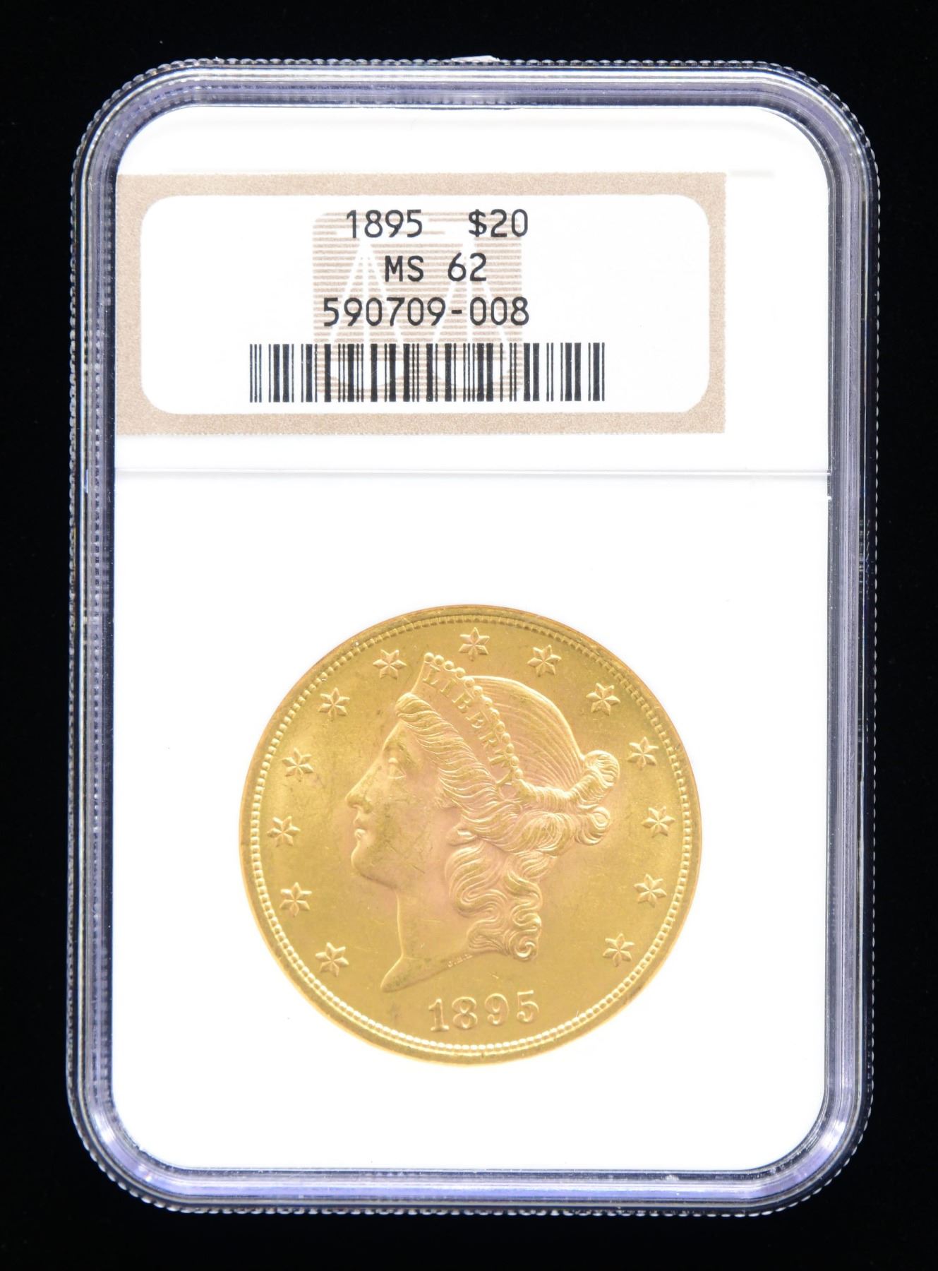 1895 $20 LIBERTY HEAD DOUBLE EAGLE GOLD COIN.
