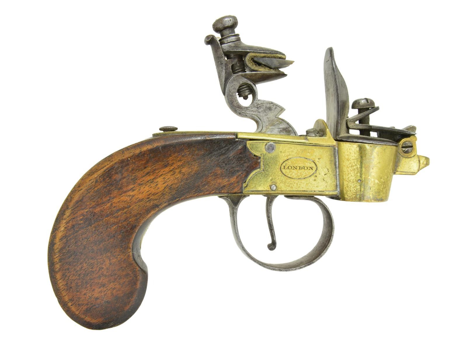 18TH CENTURY ENGLISH BASS FLINTLOCK TINDERLIGHTER.