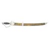 HUNTING SWORD. Overall length: 26 1/4". Blade length: 20 5/8". This blade was cut down from a longer Hussar blade likely important to the family of the owner. The blade has a single wide fuller with a single narrow fuller near the spine. The blade is engraved over 1/3 of its length with a rampant Hussar on each side & foliate motif. There is also a ribbon on each side that reads “VIVAT HUSSAR”, which translates to “THE HUSSAR LIVES”. Solid silver S-shaped guard with cut designs on each quillon. Chained guard terminates just below the very well articulated solid silver lion head pommel. Grip is diagonally reeded dark hardwood. Scabbard is silver mounted leather. CONDITION: blade shows a medium gray mottled patina. Hilt has a pleasing lightly tarnished finish and the grip is undamaged. Scabbard leather appears to be a skillful museum quality replacement utilizing the original solid silver mounts. (02-19591/BF). $1,200-1,600.