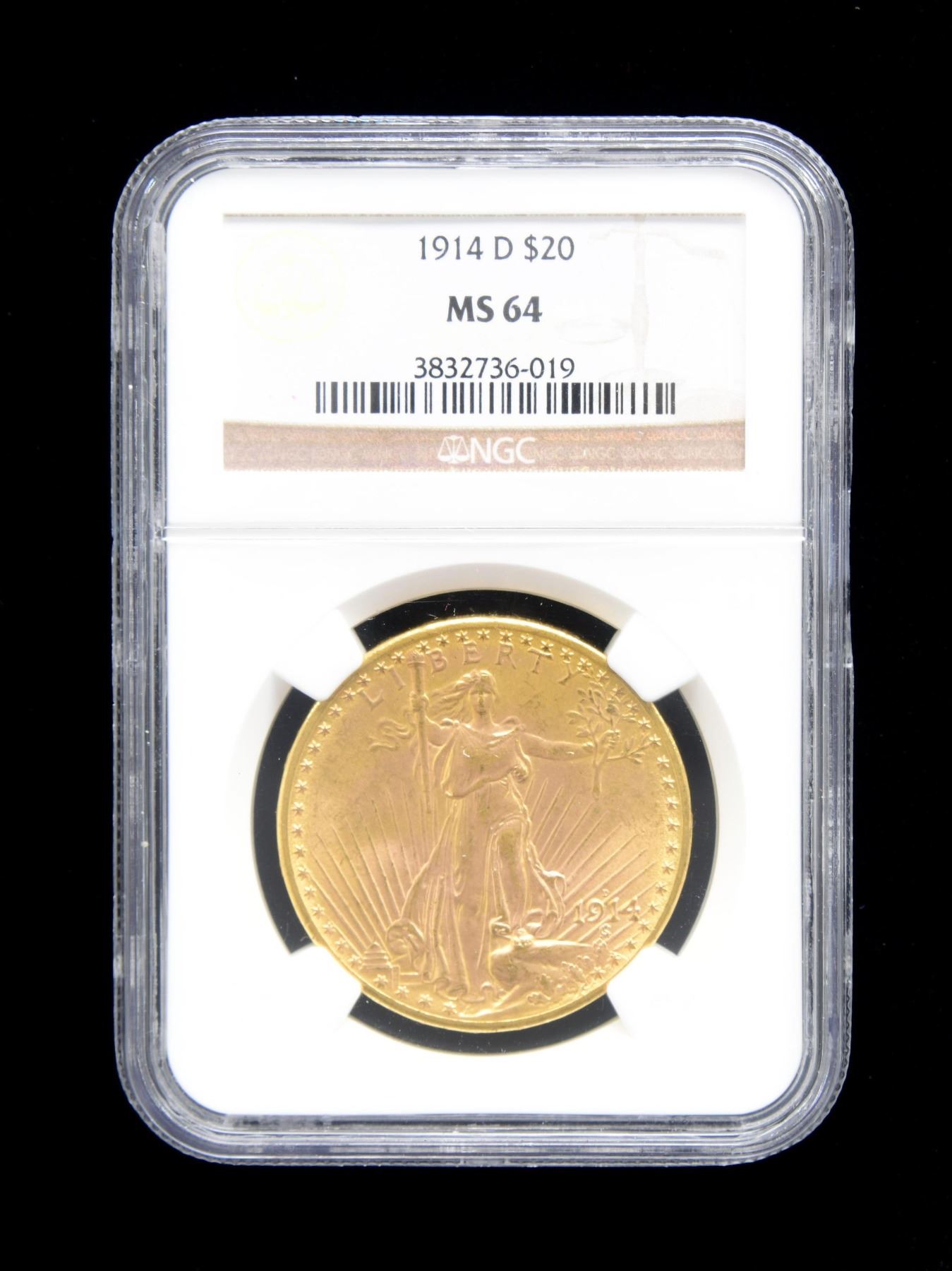1914 D $20 GOLD ST. GAUDENS DOUBLE EAGLE COIN.