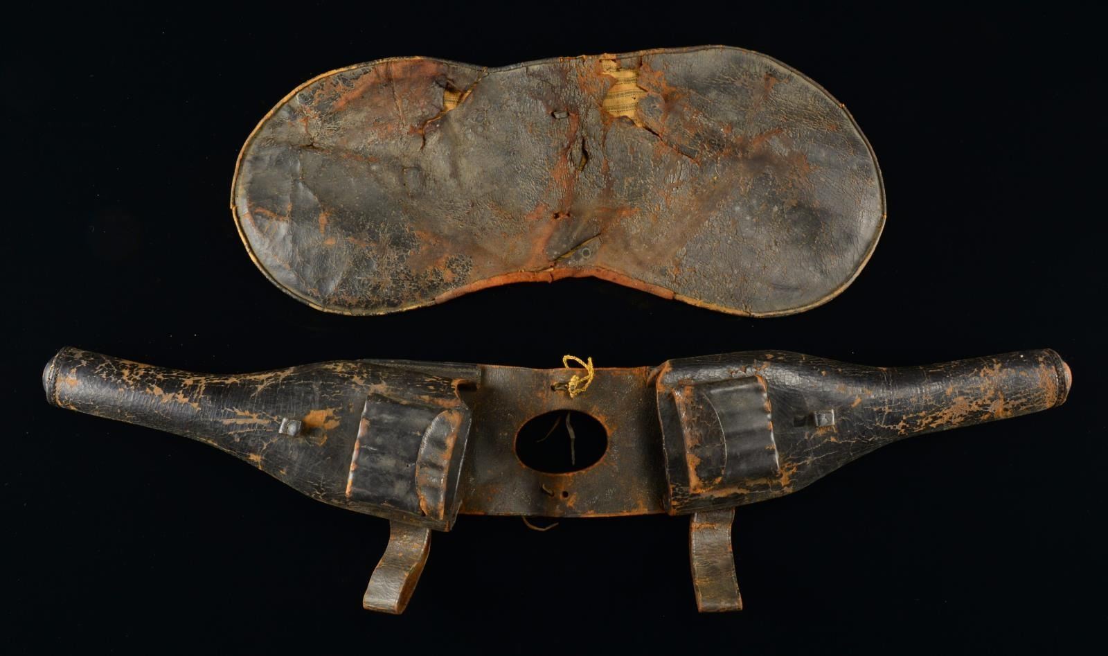 19TH CENTURY BLACK LEATHER SADDLE HOLSTERS WITH