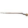 Cal. 63. NSN. 56" overall, 43" 3-stage barrel with flared muzzle. Barrel attached to stock with engraved silver & brass sheeting. Yemeni match locks have unique large carved butt pads, this example has fur coverimg pad. CONDITION: fair to good overall, several inches of fore stock are missing and based on patination of exposed iron barrel, that's been missing a long time. This arm has the appearance being collected "as found", never cleaned and brought back as a souvenir. Matchlock mechanism functions well, dark smooth bore. PROVENANCE: Martin Lane Historic & Western Americana Lifetime Collection. (01-24589/JS). ANTIQUE. $400-600.