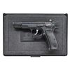 1) Cal. 9mm. Luger. S# H7537. Bbl. 4 1/2". S# matches on frame, slide & bbl. Fixed sights. Slide marked on left side w/ "CZ" logo. Model "75 Cal. 9 PARA". Import marked on left forward end of slide. Frame marked on left side "Made in Czechoslovakia". SA / DA. Thumb safety. Spur hammer. Checkered plastic grips w/ "CZ" logo. MAGS: 1 unmarked 15 rd. UNATTACHED ACCESSORIES: molded plastic carrying case, cleaning rod, bore brush, instruction manual & test target. CONDITION: all aspects including bore near excellent. (21-1127/RW). 2) Cal. 9 mm Luger. S# C4228. Bbl. 4 1/2". S# matches on frame, slide & bbl. Fixed sights. SA / DA. Ambidextrous safety. Slide release. Slide marked on left side "Model 85 Cal. 9 Luger". Import marked on left forward end of slide. Frame marked on left side "Made in Czech Republic." Rowel hammer. Black plastic checkered grips. MAGS: 1 unmarked 15 rd. UNATTACHED ACCESSORIES: black plastic carrying case. Cleaning rod & bore brush. Papers include copy of test target. Instruction manual. CONDITION: all aspects including bore near excellent. Padded case interior has deterioration. (21-1129/RW). BOTH MODERN. $650-1,100.