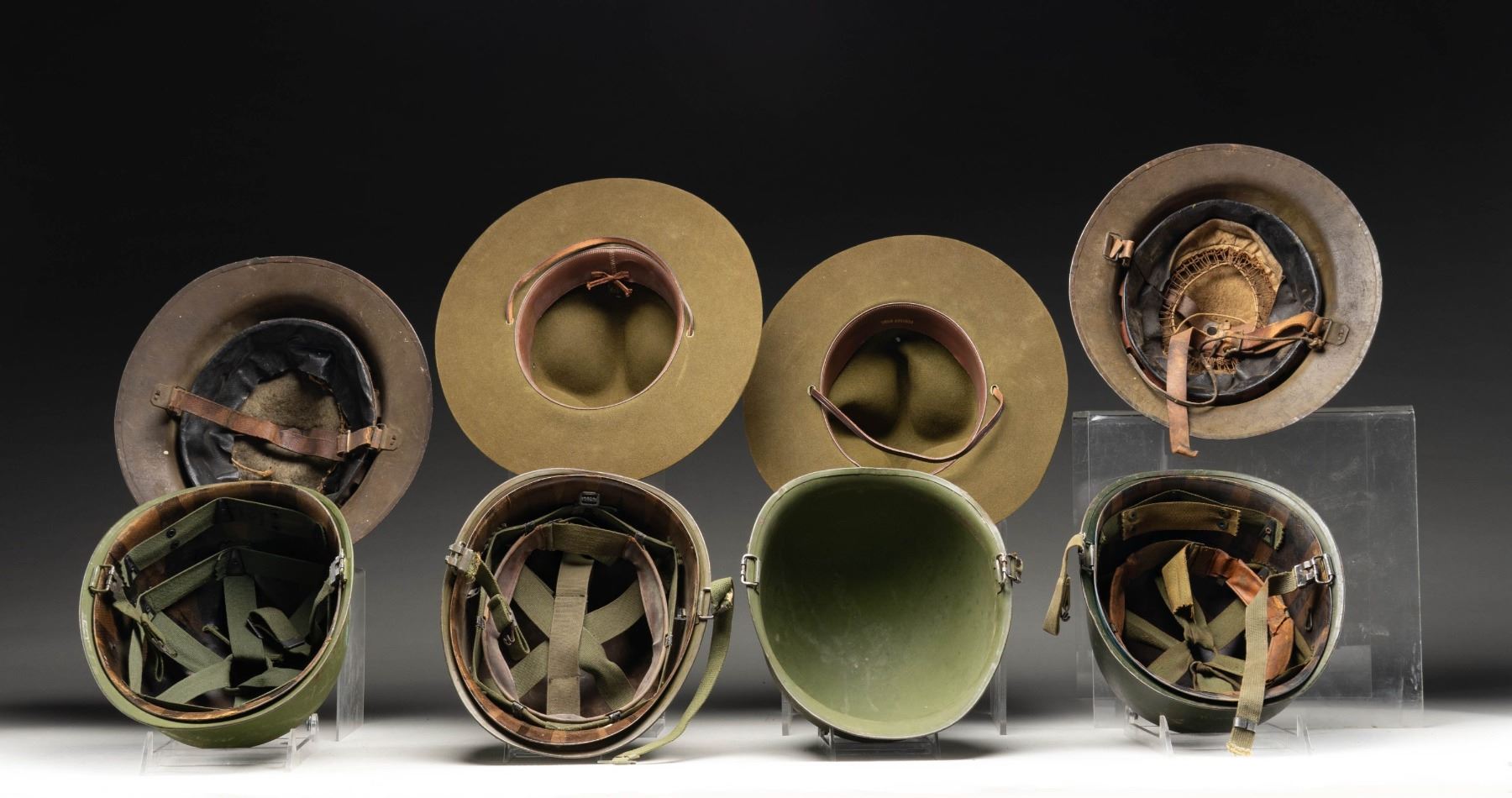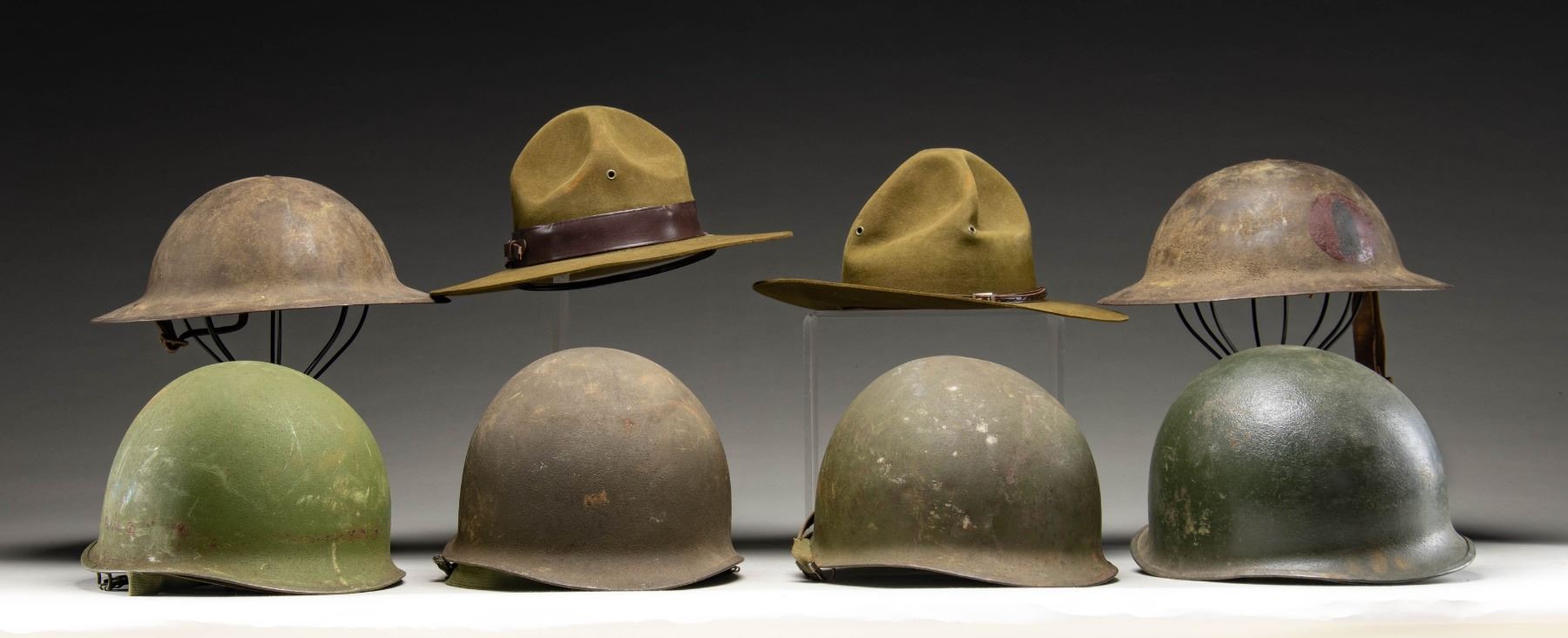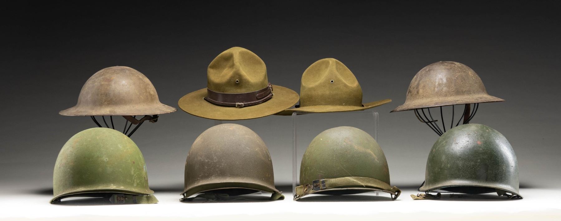 2 M1917 & 2 M1 HELMETS ALONG WITH 2 BSA HATS.