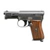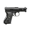 1) S# 290540. Earlier example w/ checkered straight back wood grip; fire blued trigger & takedown rod. Matching numbered slide, bbl. & sideplate. "Germany" export marked. CONDITION: right side & front strap very good; flat area of left side w/ noticeable cleaned light oxidation. Hand worn grips w/ very sm. chip at top back & no finish on mag. release. Very good bore. (21-2596/NW).