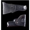 "U.S. MILITARY HOLSTERS AND RELATED ACCOUTREMENTS" BY EDWARD SCOTT MEADOWS. 1) SMITH & WESSON MODEL 1916 HOLSTER. Pictured on page 434 of said book. Total of 25 mfg. Black leather holster with "US" embossed on flap. Back embossed with S&W logo and "CW" initials. 2) BIANCHI PROTOTYPE HOLSTER. Black leather Officer's holster marked "BIANCHI / PROTOTYPE". CONDITION: Very good holsters overall with light handling marks. Bianchi holster has orange residue on exterior. S&W holster has flaking finish from retailer sticker. PROVENANCE: The Collection of Edward Scott Meadows. (02-22148/MD). $200-400.