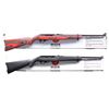 1) 10/22RB-BGZ WITH MATCHING FACTORY BOX. Cal. 22 LR. S# 356-30624 (2010). Ruger Model 01253. Barrel 20". Hi-Viz sights. Matte blue finish. Black on Red laminated stock with Celcon buttplate. MAGS: 1 - 10 rd. UNATTACHED ACCESSORIES: box with lock & paperwork. CONDITION: all aspects near excellent. (24-3571/MD). 2) 10/22RPBF WITH MATCHING FACTORY BOX. Cal. 22 LR. S# 359-42059 (2012). Ruger Model 01293. Barrel 20". Williams fiber optic sights. Black synthetic stock. MAGS: 1 - 10 rd. UNATTACHED ACCESSORIES: box with rail, lock & paperwork. CONDITION: all aspects near excellent. (24-3605/MD). ALL MODERN. $400-600.