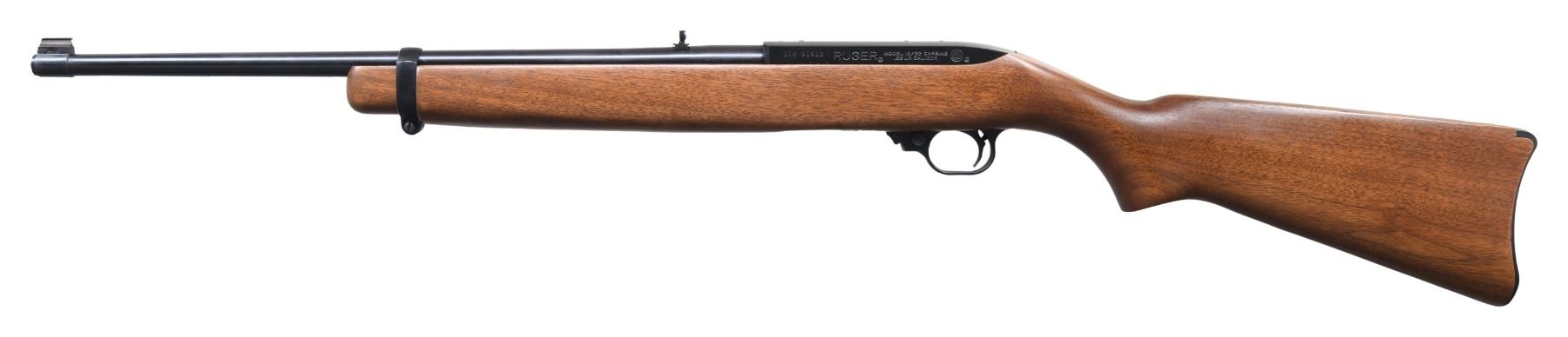 1) PRE-WARNING CARBINE. Cal. 22 LR. S# 116-91913. Mfg. 1977 as 10/22R. Bbl. 18.5" w/ out Warning marks. Gold bead band mounted front sight & adj. folding rear sight sight. Alloy trigger assembly. Band mounted walnut stock w/ Celcon buttplate. MAGS: 1 Ruger black 10 rd. CONDITION: all aspects near excellent including bore showing a few scattered handling marks. (24-2814/MD).