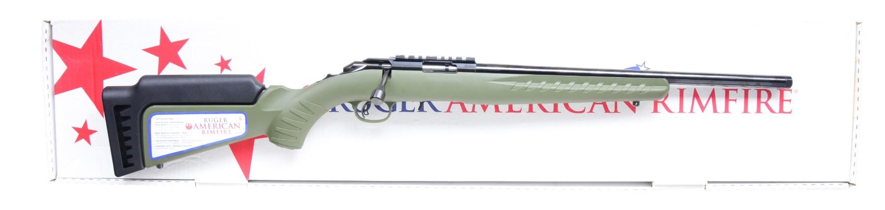 1) DISTRIBUTOR EXCLUSIVE WITH MATCHING BOX. Cal. 22 LR. S# 833-21948. Mfg. 2015 as Model 08334. Matte black finish. Bbl. 18". Olive green synthetic stock with integrated black recoil pad. UNATTACHED ACCESSORIES: Factory box. CONDITION: Near excellent overall. Bore is bright & strong. (24-3432/MD)