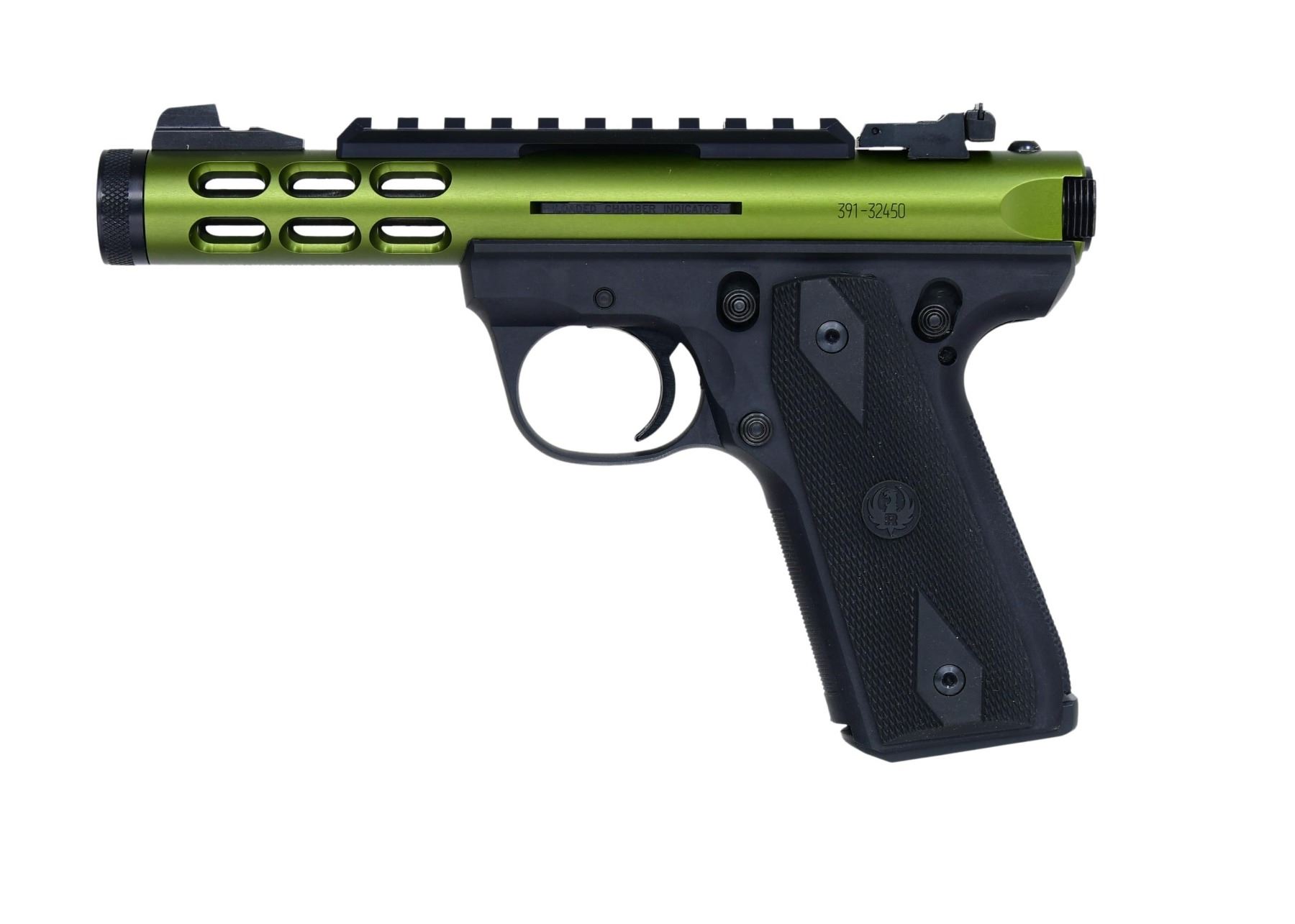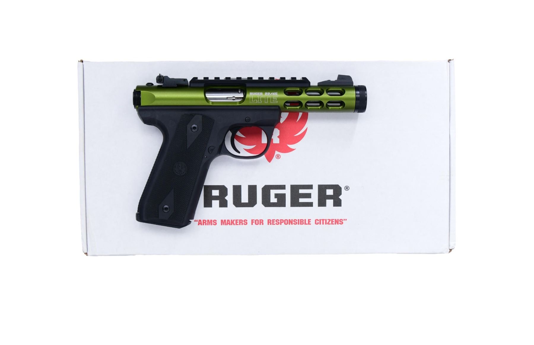 WITH MATCHING FACTORY BOXES. ALL: cal. 22 LR. Black polymer frames. 1) 22/45 LITE. S# 391-32450. Mfg. 2015 as Model 03912 & Catalog No. P45MK3ALRPOVU-OD. Green Anodized finish with 4.5" barrel. Blade front & adj. rear sights. Picatinny rail. MAGS: 2-10 rds. UNATTACHED ACCESSORIES: factory box with manual & case. CONDITION: all aspects near excellent including bore. (24-2893/MD). 2) 22/45 HUNTER. S# 270-00777. Mfg. 2006 as Model 10120 & Catalog No. KP678HMKIII. Stainless steel finish. Bbl. 6.88". Fiber optic front & adj. rear sight. MAGS: 2-10 Rds. UNATTACHED ACCESSORIES: Factory box, manual, and lock. CONDITION: near excellent. The bore is bright with sharp rifling. (24-2976/MD). ALL MODERN. $600-850.