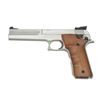 1) TARGET. S# UBA1031. Bbl. 6". Mfg. 1994-1996 in Houlton ME having bright milled sides & matte finished edges. Bbl. drilled & tapped for sight base. Smooth finger grooved walnut grips. Blued trigger & controls. (22-225/NW).