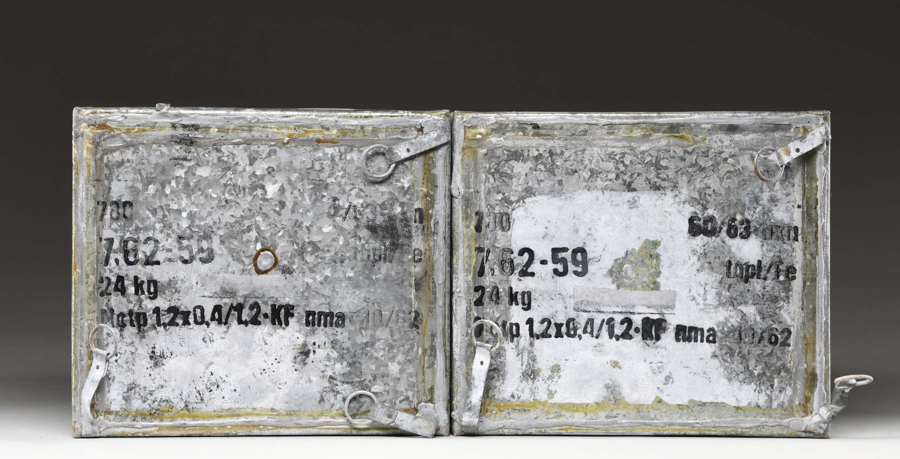 1,560 Rds. of "BXN" steel lacquer case, spitzer boat tail steel core silver tip ammo. CONDITION: cans sealed as is with blue tape & ORDM stickers on outside. (02-24585-10/MD). $500-750.