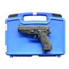 1) SIG SAUER P220 SAO PISTOL. Cal. 45 ACP. S# G377744. Bbl. 4". Sig P220 SA only. Rear serrated stainless slide w/ Sig black finish matching frame. Drift adj. front & rear sights. Ambidextrous safety. Sig 2 piece black plastic grips. Accessory rail below bbl. MAGS: 3-8 rd. UNATTACHED ACCESSORIES: blue plastic foam lined factory case w/ paperwork & fired casing. CONDITION: firearm still enjoys the vast majority of its factory finish w/ thinning on bbl. due to mechanical intervention. Shiny bore w/ strong rifling & fire control mechanism appears to function correctly when cycled by hand. (21-1473/JZ). 2) SIG SAUER P522 PISTOL. Cal. 22 LR. S# 30A002069. Bbl. 11 1/2". 22 LR variant of the Ruger 556. Quad rail forend w/ top regulated rail providing 15" of real estate for sight mounting. Matte black finish on all exterior surfaces. Bbl. terminated w/ threaded muzzle & A1 style flash hider. Ambidextrous safety/ selector. Sig red dot sight w/ lens covers. Green laser mounted at 3:00 on handguard. Front mounted storage compartment in place of traditional gas piston system. Ambidextrous mag. release & left side bolt release. Sling mounting provisions on left side. MAGS: 2 factory 30 rd. UNATTACHED ACCESSORIES: factory owners manual & black nylon sling. CONDITION: finish on exterior surfaces still enjoys complete coverage w/ areas of thinning coinciding w/ sling mounting hardware. Green laser sight appears to function correctly. Unable to verify function of red dot sight. Shiny bore w/ visible rifling. Fire control mechanism appears to function correctly when cycled by hand. (21-1474/JZ). BOTH MODERN. $800-1,200.