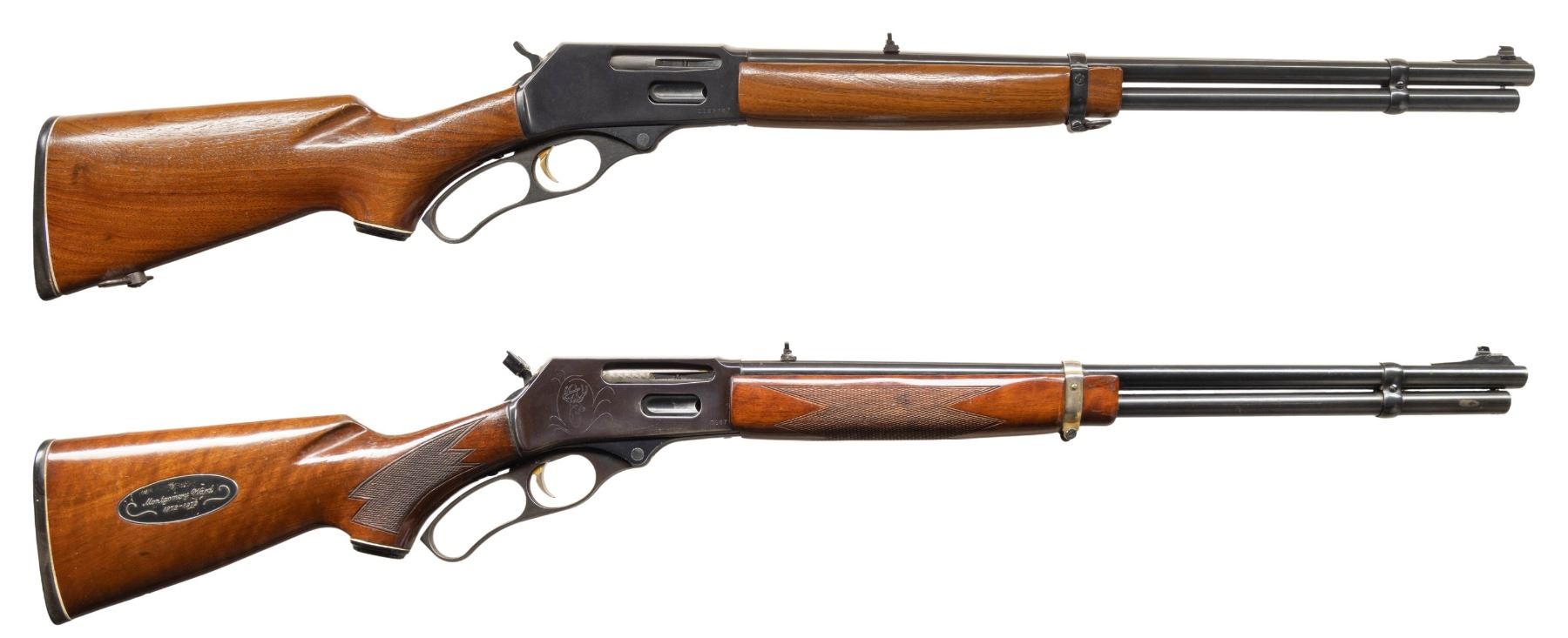 ALL: Cal. 30-30. Mfg. by Mossberg for Montgomery Ward. Bbls. 20". Sporting sights. Tubular mags. Drilled & tap receiver w/ gold washed triggers. Walnut stock sets with Westernfield grip cap & buttpads.