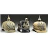 2 WWI ERA ERSATZ SPIKE HELMETS & 1 SHAKO.