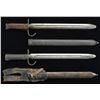 Each overall: 15 1/8". Blade: 11". Bayonet for Type 38 Training rifle; a smoothbore 7/8 scale version of Type 30 rifle. Each has steel scabbard.