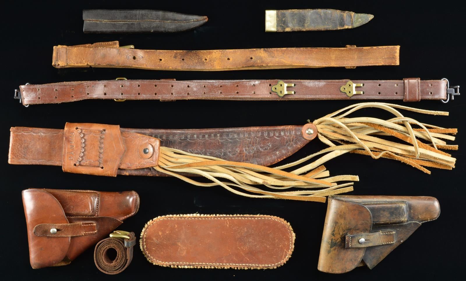 2 WWII PPK HOLSTERS & OTHER LEATHER GOODS.