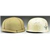 1) This helmet has been overpainted in white winter camouflage. The paint was applied around the Luftwaffe decal so that it clearly shows on the left side of the helmet. The inside left of the helmet is stamped “ET71” and the inside rear is stamped “5013”. The leather liner is marked “Kopfweite. Gr. 60” & “Stahlhelm. Gr. 71”. The harness appears to be a gray-green finished leather backed with a brown sueded leather. CONDITION: helmet shows significant artificial use with some oxidized areas. Liner & harness show overall light wear.