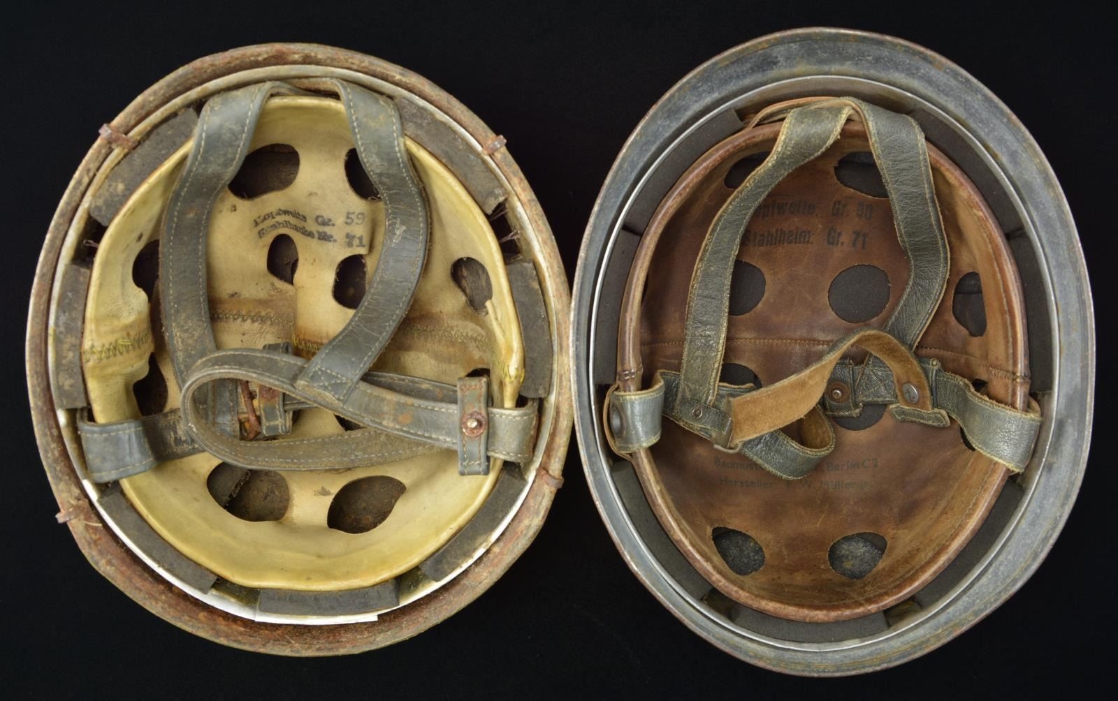 These two helmets are believed to be of post-WWII production and were made for the collectors market.