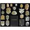 Primarily Maine position badges, notable examples include: Wells Fargo & Co Express San Francisco, CA Guard badge. / New York City Detective bade w/ leather cover. / CONDITION: 1 badge split in half; balance good to very good overall w/ light patina & wear. (02-17573/MD). $600-800.