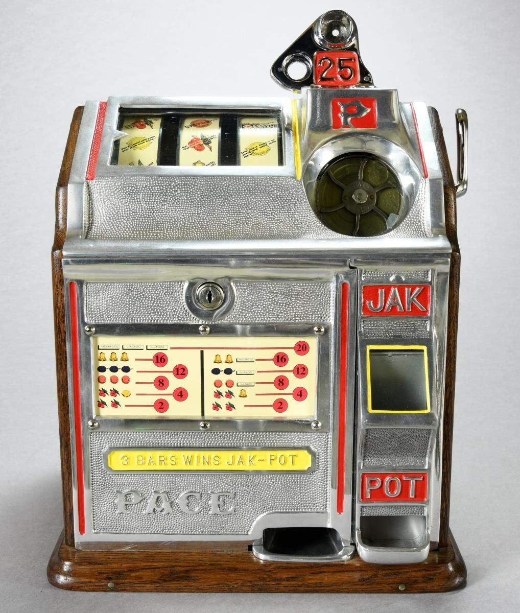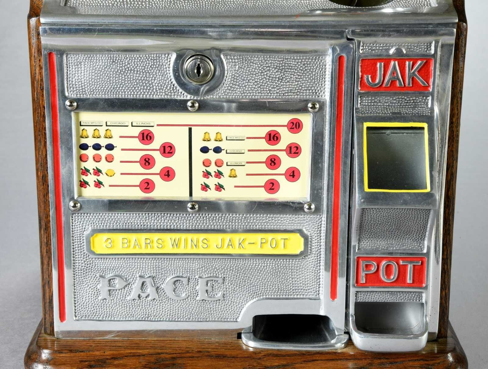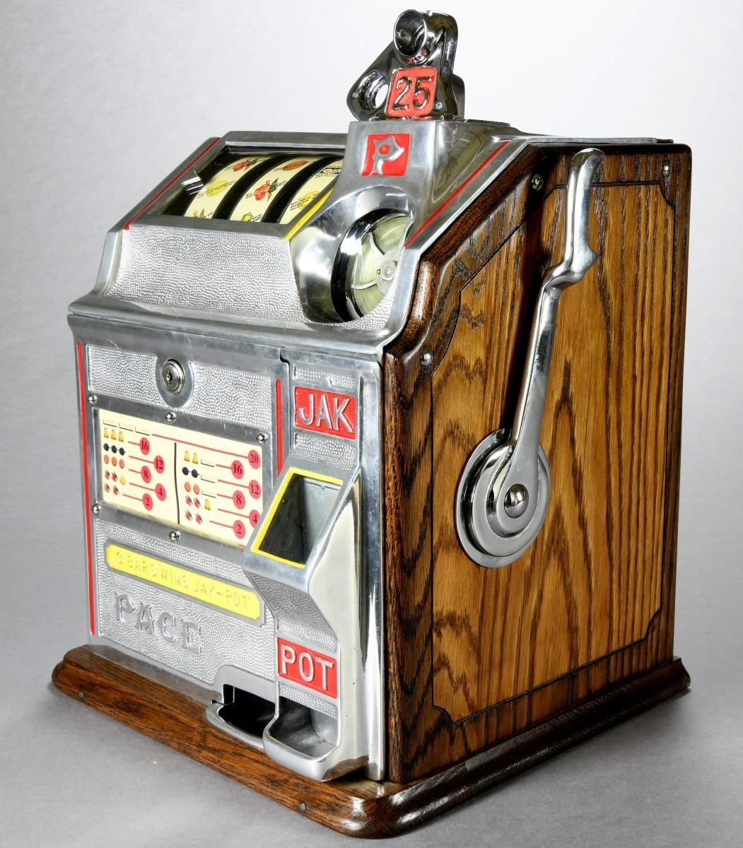 Circa 1930. Full complete restoration to an original. Has a working jackpot. Plays and pays correctly, key included. SIZE: 15" w x 15 1/2" d x 21" h. CONDITION: very good, fully restored. (05-723/JJ). $1,500-2,000.