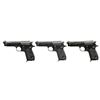 ALL: cal. 9mm Luger. Bbls. 4.5". Blade front w/ fixed notch rear sights. Blue finished slides & frames. 2 Piece grooved plastic grips. MAGS: 1 detachable 8 rd. for each pistol. 1) S# 33551. SARCO import marked. UNATTACHED ACCESSORIES: black molded Flambeau foam lined molded box. CONDITION: 80% blue showing carry & edge wear w/ spots of surface corrosion. Grips show wear & scratches. Bore retains strong rifling showing spots of very light pitting. (21-807/DS). 2) S# 34730. PW ARMS import marked. CONDITION: 80% lightly faded blue showing carry & edge wear w/ scratches, handling marks & spots of corrosion. Grips shows scratches, handling marks & wear. Bore retains strong rifling showing a spot of pitting. (21-808/DS). 3) S# 15675. PW ARMS import marked. UNATTACHED ACCESSORIES: black molded Flambeau foam lined molded box. CONDITION: 70% blue showing carry & edge wear w/ dents, scratches & spots of corrosion. Grips show scratches, marks & light wear. Bore retains sound rifling showing spots of light pitting. (21-809/DS). ALL MODERN. $750-1,000.