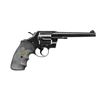 1) COLT NEW ARMY & NEW NAVY. Cal. 38 Colt. S# 261429. Bbl. 4 1/2" w/ semi circular front sight. 6 Shot fluted cyl. Blue finish. 2 Piece walnut grips. Sideplate & butt of gun has electric pencil marking "Y752127". S# indicates 1906 mfg. CONDITION: over 90% bright blue showing edge wear & cyl. drag line. Grips show heavy wear w/ dents, chips & crack at butt. Bore is bright w/ strong rifling. (20-942/DS) 2) COLT NEW POLICE. Cal. 32 Colt New Police. S# 54093. Bbl. 5" rnd. w/ semi circular front sight. 6 Shot fluted cyl. 2 Piece checkered walnut grips w/ gold Rampant Colt medallions. CONDITION: metal has gray coloration from cold blue application showing scattered light pitting. Grips show heavy wear & handling marks w/ added wood repairs at toe & above medallions. Dark pitted bore. (20-943/DS). 3) COLT OFFICIAL POLICE. Cal. 38 Spl. S# 863706. Bbl.6" w/ serrated ramp front sight. 6 Shot fluted cyl. Blue finish. Aftermarket Pachmayr finger groove rubber grips. S# indicates 1959. CONDITION: over 80% lightly worn blue. Grips show light wear. Bore is bright w/ strong rifling. (20-945/DS). 4) SMITH & WESSON MODEL 1917 BRAZILIAN CONTRACT. Cal. 45 ACP. S# 185858. Bbl. 5 1/2" w/ semi circular sight. 6 Shot fluted cyl. Blue finish. Sideplate has Brazilian crest w/ 1937 date. Pachmayr finger groove rubber grip. CONDITION: bbl. & receiver have 80% dull worn blue showing scratches & spots. Cyl. has mottled gray brown coloration from touch up finish. Bore is dark showing scattered pitting. (20-992/DS). ALL CURIO. $1,100-1,750.