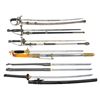 3) TAIWAN MADE CHINESE SWORD. Overall: 35". Comes with scabbard, blue bag & box. CONDITION: near excellent overall.