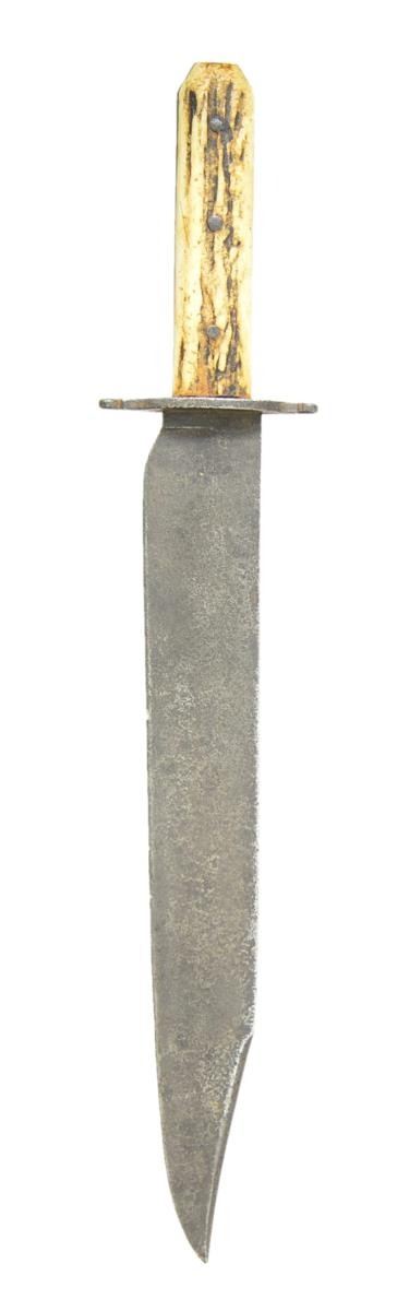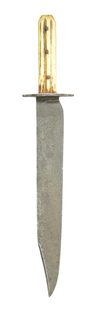 3) 17" Overall, 12" clip point blade, full-tang, stag slab grip. CONDITION: good to very good overall, iron patina. (02-15564/JS). $800-1,200.