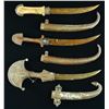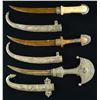 3) Overall length: 16”. Blade length: 8 1/8". Plain curved blade with a heavily adorned silvered brass ferrule and highly exaggerated top comb. The grip is silvered brass and the sheath is also silvered brass with repoussé work. CONDITION: moderate wear. (02-19479/BF). $600-900.