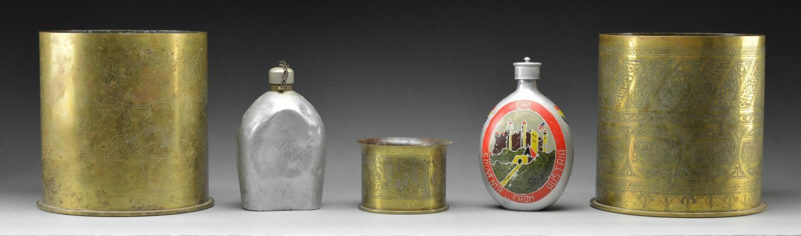3 PIECES OF WWI TRENCH ART & 2 WWII STYLIZED