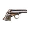 1) NEW MODEL POCKET PERCUSSION. Cal. 31. S# 11917. Bbl. 3 1/2" oct. w/ semi circular front sight. 5 Shot rnd cyl. 3rd Type revolver w/ all iron construction. Spur trigger. 2 Piece walnut grips. CONDITION: retains traces of blue w/ balance fading to gray w/ light pitting & sm. dents. Nipples are hammered down. Grips have worn finish w/ chips & numerous sm. dents at butt. Dark lightly pitted bore retaining intact rifling. (01-17109/DS). 2) NEW MODEL POCKET CARTRIDGE. Cal. 32 RF. S# 23032. Bbl. 3 1/2" oct. w/ semi circular sight. 5 Shot rnd cyl. All iron construction. Spur trigger. 2 Piece rosewood grips. Apparent conversion no "20" is found under left grip. CONDITION: metal has faded to gray showing light pitting. Grips show wear & handling marks w/ sm. chips at toe. Dark bore w/ w/ scattered pitting showing largely intact rifling. (01-17110/DS). 3) REMINGTON-ELLIOTT DERRINGER. Cal. 32 RF. S# 14384. Bbls. 3 3/8" four shot stationary cluster. Bbl. group tilts forward for loading. Ring type trigger. 2 Piece hard rubber grips. CONDITION: bbls. retain 40% fading blue. Action retains traces of blue. Grips show light wear & marks. Bores are bright w/ sound rifling showing a few sm. spots of very light pitting. (01-17136/DS). ALL ANTIQUE. $1,000-1,500.