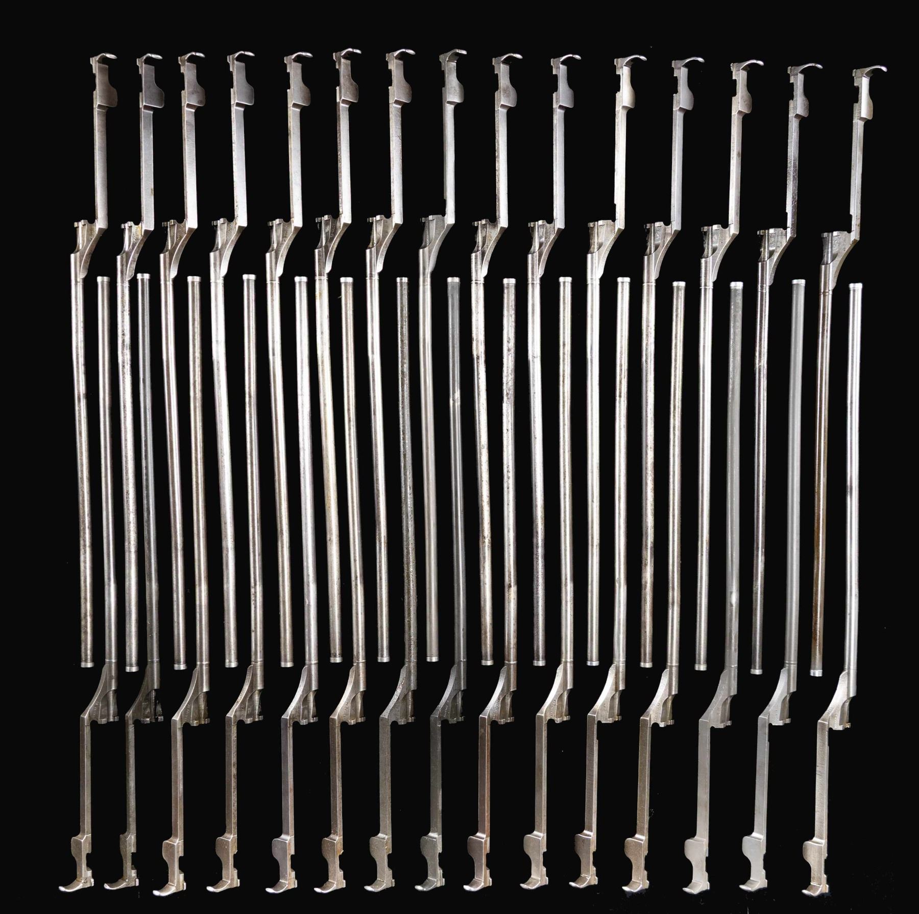 RODS. Rods are all manufactured w/ the safety notch & are all marked "SA" w/ drawing numbers. Six of the rods have additional "NM" markings. CONDITION: the well-used rods exhibit wear, loss of finish & small spots of oxidation. (02-24590-18) NON-GUN. $700-900.