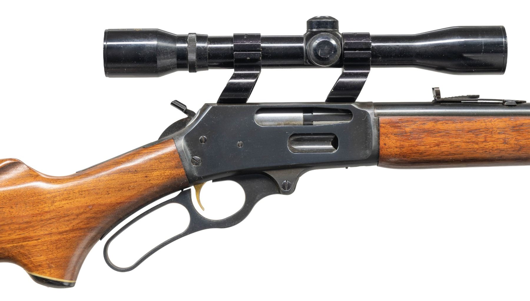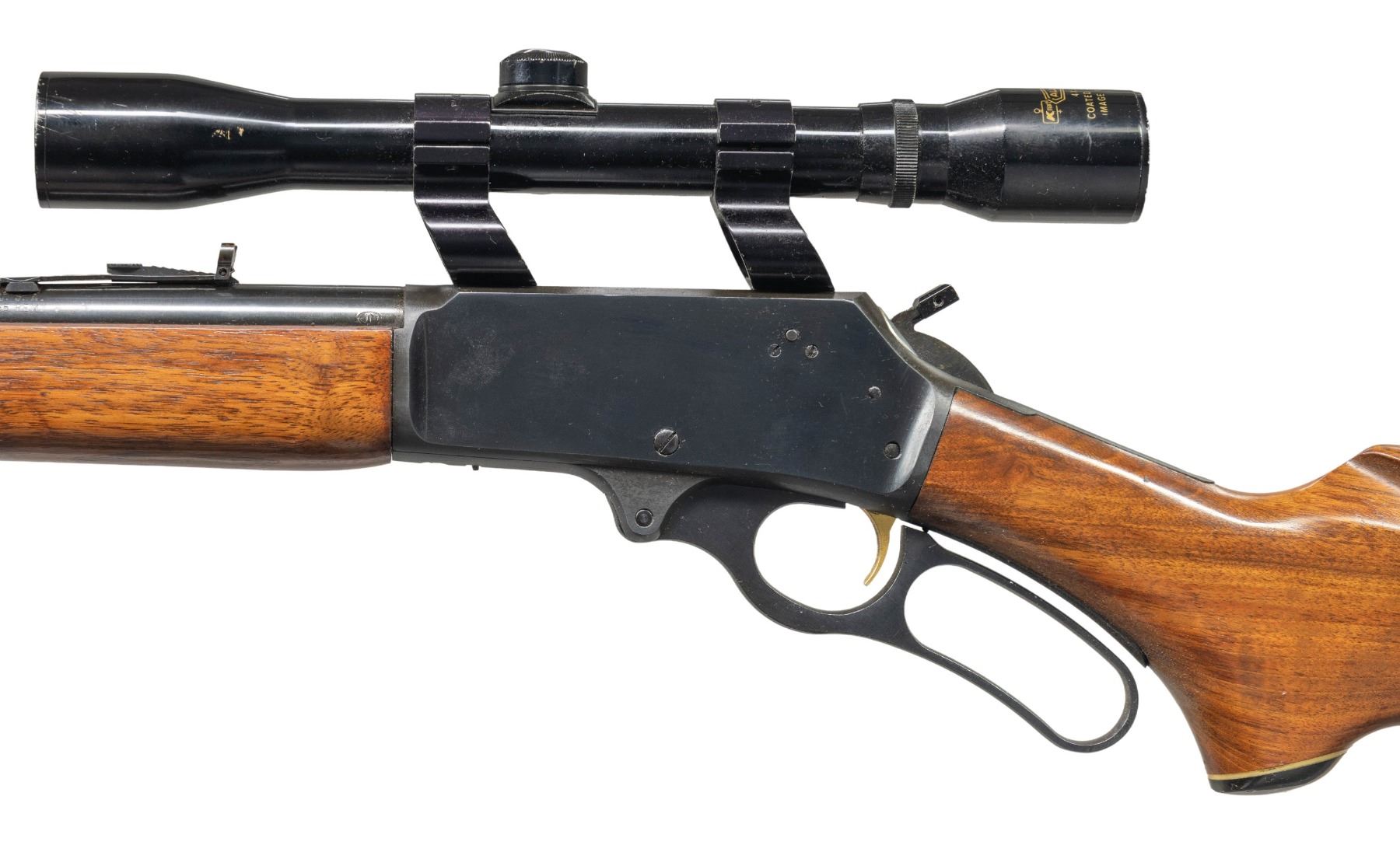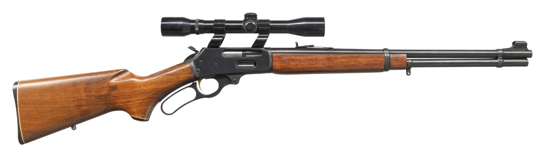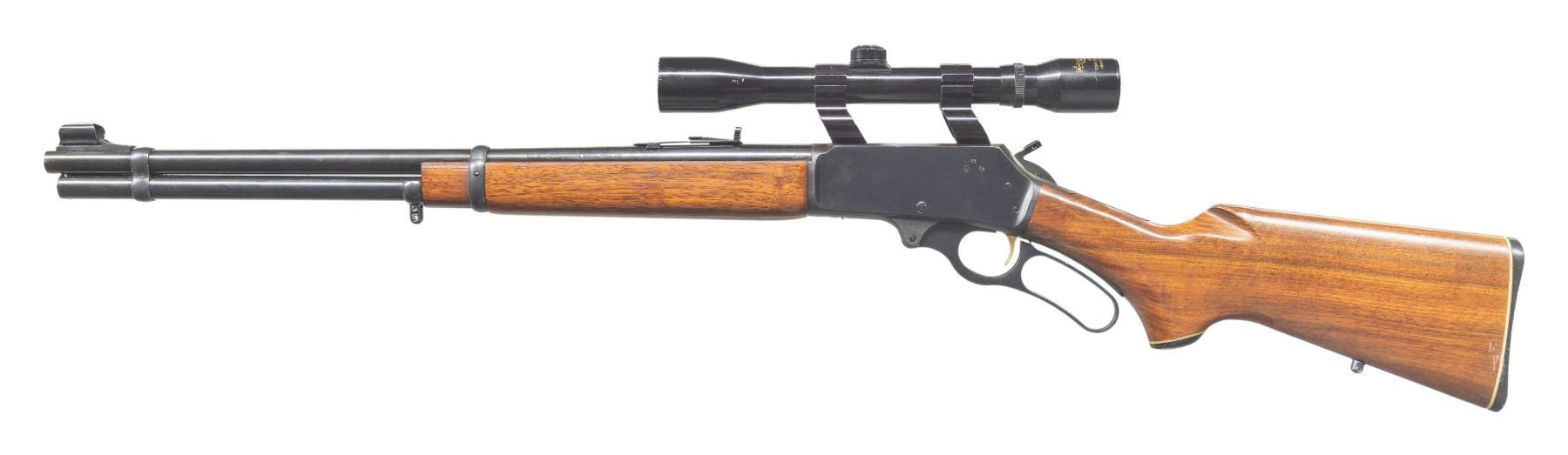Cal. 35 Rem. S# 24135036. Mfg. 1976. Micro-groove 20" bbl. Sporting sights. Kmart All Pro 4x32 scope on Wideview rings. Pre-CBS action w/ gold trigger & hammer extension. Walnut stock set. CONDITION: very good to near excellent overall appearance with light handling wear & marks. Very good rifling. Scope has very good finish with serviceable optics. (25-4828/MD). MODERN. $300-500.