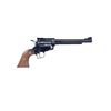 REVOLVER. Cal. .357 Rem. Maximum S# 600-02168 (1983). Features include a blued finish, 7.5 inch barrel, ramp front sight, and adjustable rear sight. Frame configuration is standard with no special designations. Cylinder holds 6 rounds and is fluted. Grips are smooth wood with Ruger medallions. UNATTACHED ACCESSORIES: Factory box. CONDITION: Overall condition is near excellent. The barrel retains approximately 98% of its finish. Frame shows about 97% finish coverage. Grips are near excellent. Bore is bright with sharp rifling. MODERN (23-6682/MD) $700-$1000.