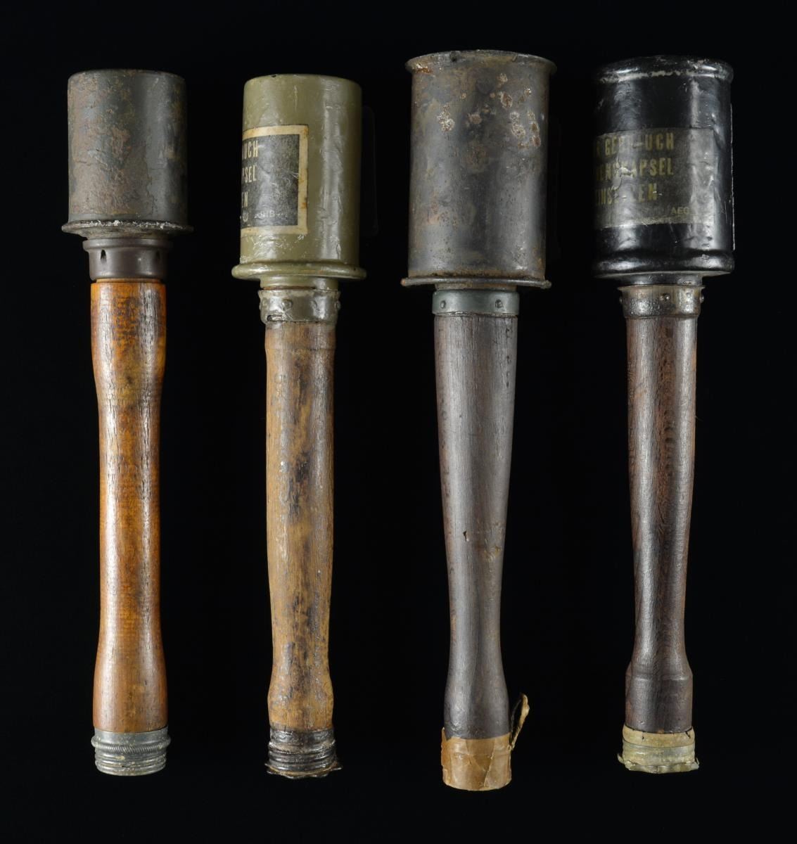 4 INERT WWI & WWII GERMAN STIELHANDGRANATES.