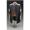 1) 1902 DRESS COAT. A fine example of an M1902 dress uniform for a quartermaster sergeant of infantry w/ 28 years of service. The standard blue 1902 coat is trimmed in white & has post 1903 buttons on the front & sleeves. Each sleeve has a quartermaster sergeant stripes featuring 3 white chevrons above a gold quartermaster insignia above laurel leaves. The base of each sleeve has 6 white service stripes above a single yellow service stripe denoting 4 years of service in the cavalry prior to his 24 years of service in the infantry. A white wool aiguillette adorns the front of the coat. Lining is black. Sleeve lining is gray. The right sleeve lining has the name, “Reissman” penned into it. CONDITION: light wear overall. 2) M1872 DRESS COAT. A nice example of an M1872 dress uniform for a quartermaster sergeant w/ 12 years of total service. The standard blue 1872 coat is trimmed w/ buff collar, shoulder tabs, tail trim & sleeve placards. The body of the coat & the trim are piped in white. There are 9 staff buttons down the front & 6 total on the tail. There are 3 cuff buttons on each sleeve & 1 at each collar tab. Each sleeve has silver & gold bullion quartermaster sergeant stripes along w/ 2 service stripes backed in blue & 1 backed in red showing prior service in the artillery. Padded lining of white muslin w/ the tails lined in black. Sleeves are lined in an off white muslin material. CONDITION: light wear overall. 3) M1881 UNIFORM. A good example of an M1881 US enlisted artillery uniform coat. Coat is dark blue piped in red w/ red collar, shoulder tabs & sleeve placards. There are 8 Indian War era enlisted eagle buttons down the front. There are 3 enlisted eagle cuff buttons on each sleeve & 1 on the left shoulder tab. The right example is missing. Coat is lined in quilted cotton & the sleeves are lined in a similar material. CONDITION: coat shows scattered moth damage. 4) NAVAL OFFICER’S DRESS COAT. A dark blue navy captain’s coatee featuring 4 gold bullion stripes at each sleeve & a gold bullion collar. There are bullion tabs at the shoulders to hold epaulettes. The dbl. breasted coat has 8 buttons down each side. There are no buttons on the sleeves or tails. There is a tag on the inside collar that reads, “RUSSELL UNIFORM COMPANY NEW YORK”. Black partially quilted lining w/ striped cotton sleeve linings. Tail of coatee is lined w/ a white silk like material. CONDITION: coat shows very minor moth damage w/ several loose threads. Tail & collar lining are a bit stained. (02-14342(4)/BF). $800-1,200.